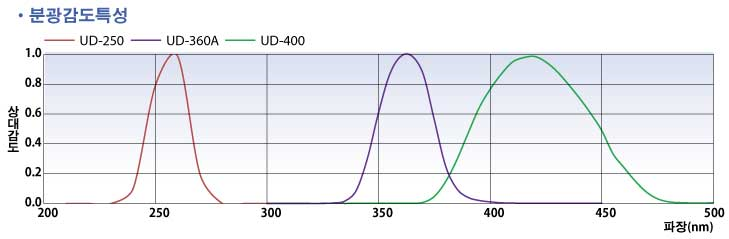 | 측정파장영역 | 220 ~ 300nm | 320 ~ 400nm | 360 ~ 490nm |